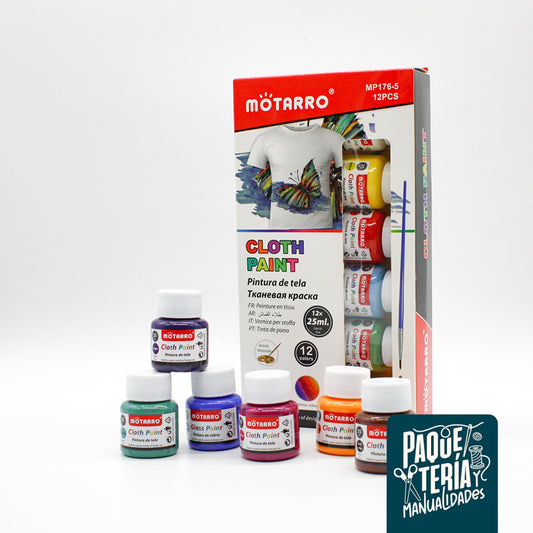 PINTURA ACRÍLICA 25 ML MOTARRO - 12 Y 6 COLORES + PINCEL