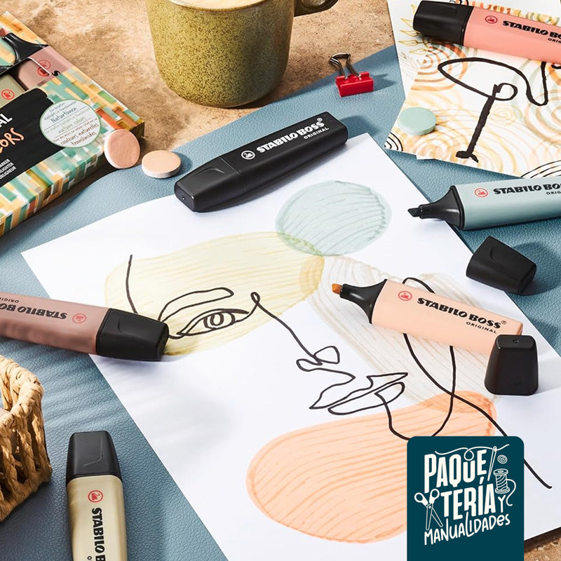 DESTACADORES STABILO BOSS NATURE COLORS - 3 TONOS NATURALEZA + TACHADOR NEGRO