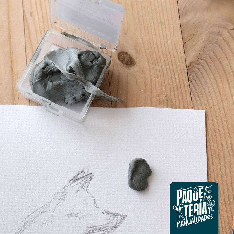 Propiedades: Fácil de moldear, textura maleable, no deja residuos, es ideal para lápiz, carboncillo, tiza o pastel.