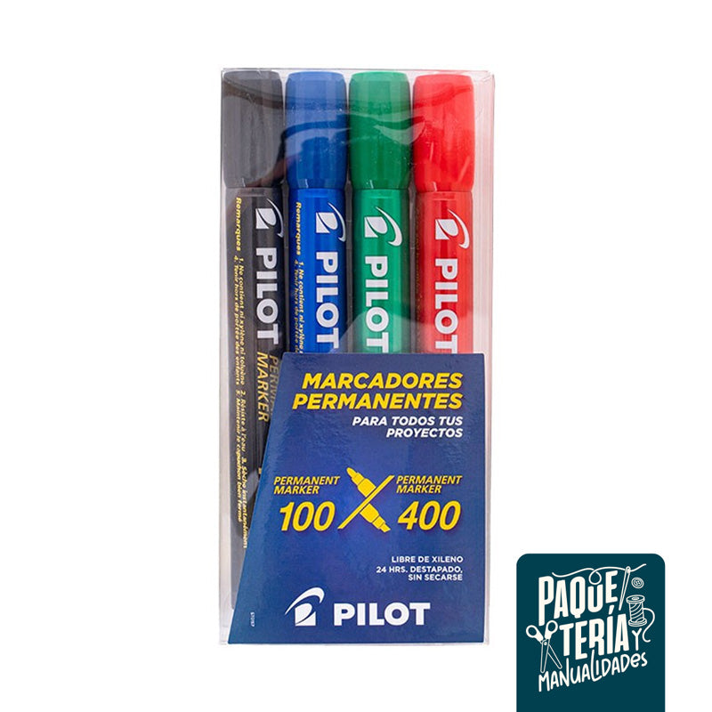 SET 4 MARCADORES PERMANENTES PILOT - 4 PLUMONES BISELADOS