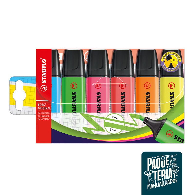 SET DESTACADORES STABILO BOSS ORIGINAL - 6 UNIDADES COLOR FLÚOR